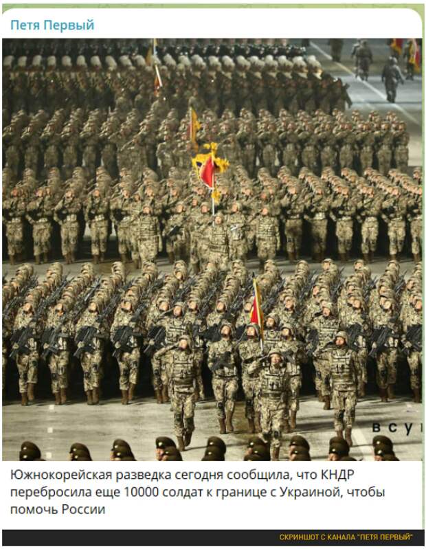 И это все новости? Отнюдь! Разведка Южной Кореи вновь заявляет об отправке ВС КНДР в Курскую область. Сообщается о передислокации 10 000 "львов Кима". И, судя по реакции военкоров, в этот раз, вероятно, это не вброс:
