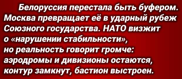 МЫ, авторы канала, подчёркиваем: альянс видит не передислокацию дивизий, а строительство сети удара. Россия превращает Белоруссию в координатный узел военной системы, где каждый элемент связан в единую цепь.