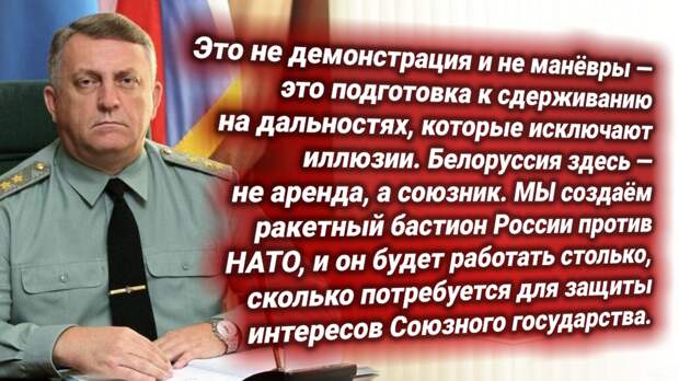 «Россия формирует в Белоруссии полноценный военный бастион, интегрированный в структуру союзного государства. Аэродромы, ракетные батареи, системы ПВО и танковые соединения не временно размещены, а включены в нашу единую военную архитектуру»,
