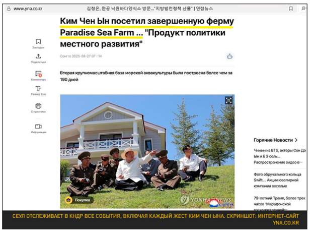 Если предыдущий пассаж и является художественным преувеличением, то самую малость. Пресса Южной Кореи отслеживает у соседа все мероприятия с участием Ким Чен Ына, вплоть до посещения новой фермы по выращиванию традиционных аквакультур. И даже начало поставок в Россию производимого КНДР пива не остаётся без внимания — мало ли, вдруг и это имеет какой-то стратегический смысл