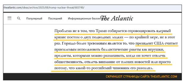 Но угрожать Путину дело, как известно, неблагодарное. А прикрикнуть на его зама по Совету безопасности, помахать ядерной дубинкой, попугать движением подлодок (ишь ты! на каждую "Огайо" найдётся своя "Булава", а то и "Орешник" с винтом!) – видимо, в понимании Трампа, можно.