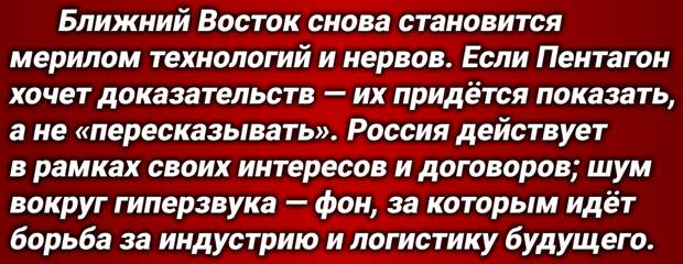 ⚡ Сигнал прост: Вашингтону нужен громкий ярлык, чтобы оправдать новые ограничения и затянуть союзников в общую линию. А также — оправдать собственные провалы. Привязка к «гиперзвуку» — это страховка для заголовков, а не данные с полигона.