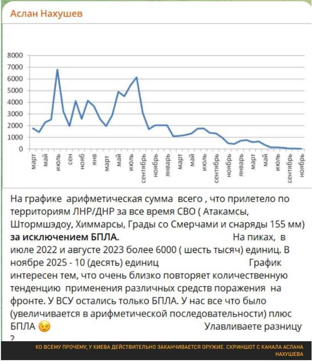Полковник Аслан Нахушев тем временем пишет, что в ближайшие несколько дней ожидается удар то ли по ОРУ АЭС, то ли по трём ПС-750 в Центральной Украине — именно с бортов ТУ-22М3М (не менее 16 бортов) гиперзвуковыми ракетами Х-32. Причём ожидают именно американцы: