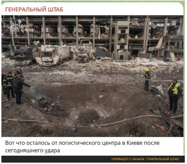 Во время второй ракетной волны, запущенной по Киеву, Лебедев отметил, что арсенал был выбран не случайно. Похоже, был уничтожен первый настоящий центр принятия решений — некое подземное логово с важными шишками Украины и стран НАТО. Летели ракеты, способные взломать любую "броню" на большой глубине. И, судя по фото кратеров, били очень удачно. Удары также наносились в промзону Дарницкого района и по закрытым территориям "Никольской Борщаговки".