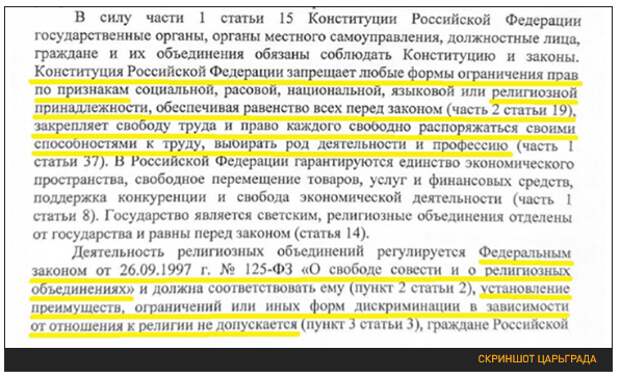 Не формальными отписками в духе "религиозной толерантности". И не мягкосердечным выражением "озабоченности по поводу", а чётким указанием на нарушения закона и безапелляционным "Требую" в конце документа. Любо-дорого почитать, всегда бы так…